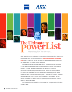 Digital Studio Hot 100 issue is the broadcasting, media and entertainment industry’s most definitive list of top players across various categories.